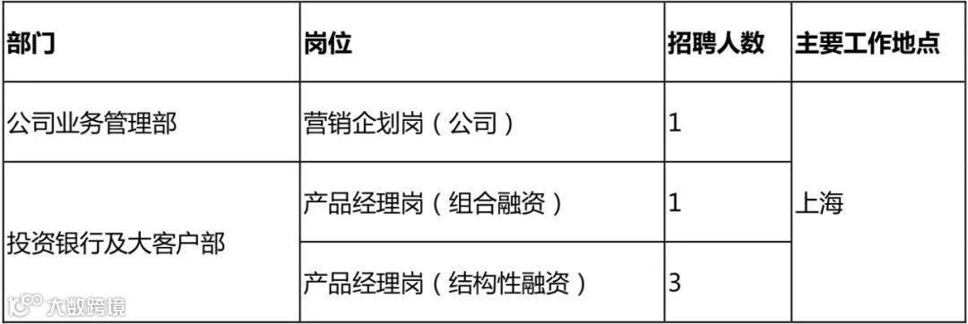 应聘条件:40 周岁以下;经济、金融、法律、管理、财会、IT 等专业全日制本科及以上学历;2 年以上商业银行、证券、基金、信托、保险、投资或律师等投资银行相关岗位从业经历;有银行信贷或项目投资业务经验者优先;具有丰富的实务操作管理经验和团队协作精神,具有较强的组织推动、综合协调能力;具备一定的产品创新、研发能力、营销能力;大学英语六级以上,熟悉国家经济金融政策,熟练掌握资金市场的相关知识。