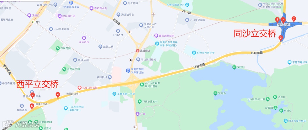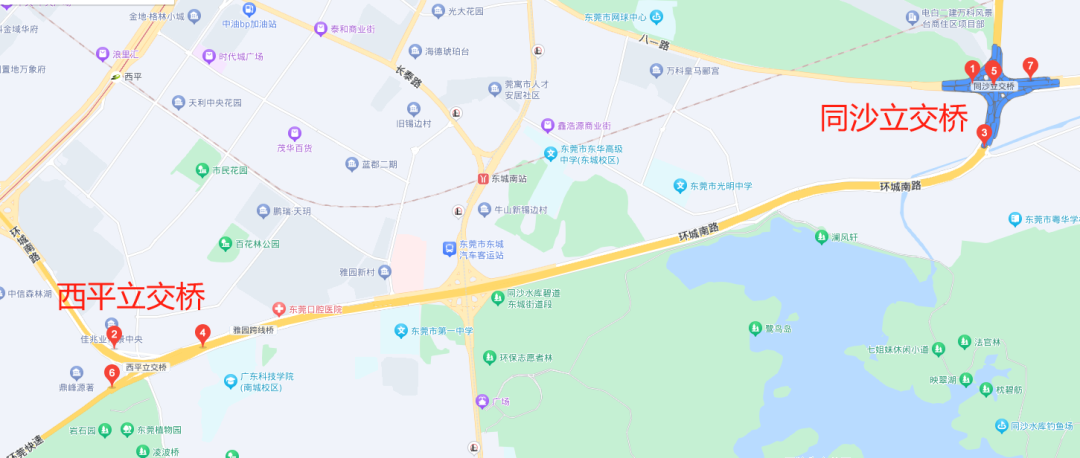(1)环城南路莞长立交分流路线:莞长路-长泰路