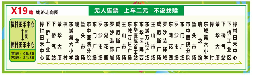 首末站:樟村田禾中心—细村—樟村田禾中心(循环线);