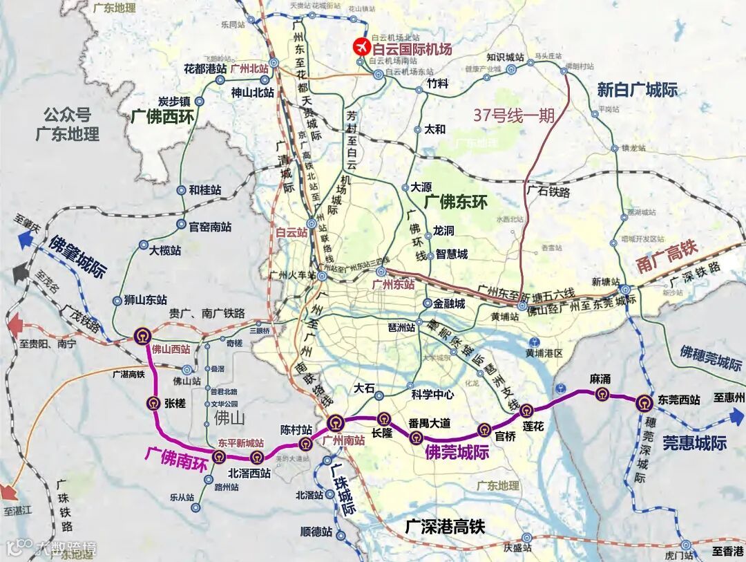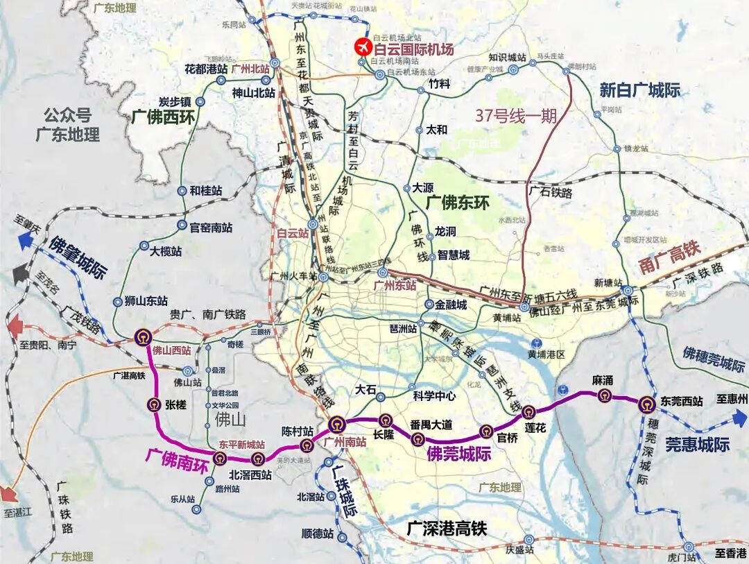 ● 佛山:陈村站、北滘西站、顺德北站、张槎站、佛山西站、狮山站、狮山北站、三水北站、云东海站、