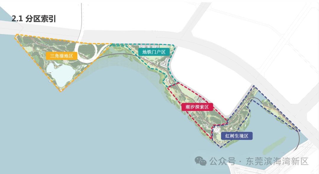 👉 三角湿地区:将在保留原有滩涂湿地的基础上,建设原点广场、湿塘秘境、叠水花台、滨海湾大桥观景台等景点。
