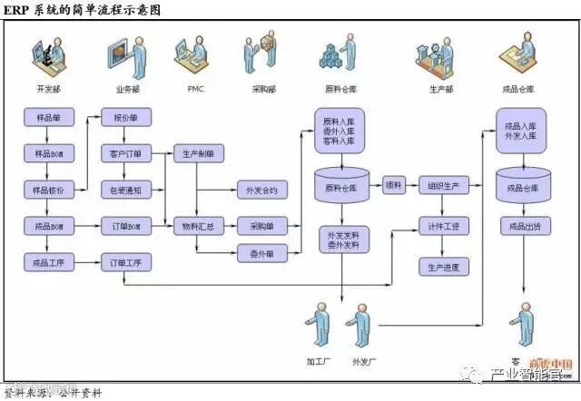 企业资源计划(ERP)是将企业的财务、采购、生产、销售、库存和其他业务功能整合到一个信息管理平台上,从而实现企业信息数据标准化、系统运行集成化、业务流程合理化、绩效监控动态化和管理改善持续化的系统,其针对物资资源管理(物流)、人力资源管理(人流)、财务资源管理(财流)、信息资源管理(信息流)实施集成一体化的企业管理。ERP系统的主要宗旨是对企业所拥有的人、财、物、信息、时间和空间等综合资源进行综合平衡和优化管理。透过ERP系统配合可以提升企业与原物料供货商之间的紧密度,增加企业应对市场变动的能力,与此同时其中的CRM客户关系管理模块则帮助企业得以充分掌握市场需求风向的变化,综合促进企业与上下游的互动发展关系。