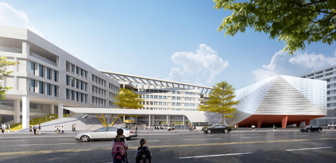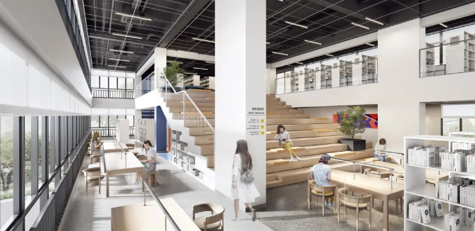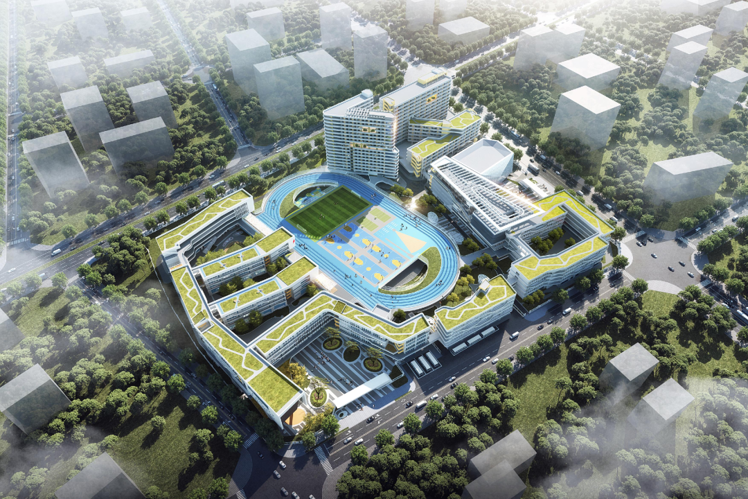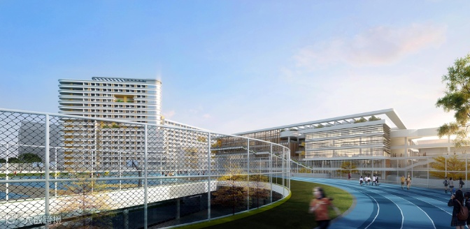 靖海学校整体采用“折院叠园”的设计概念,校园空间在水平和垂直两个维度立体展开,致力于打造集现代化、智慧化、多元化于一体的绿色生态校园。
