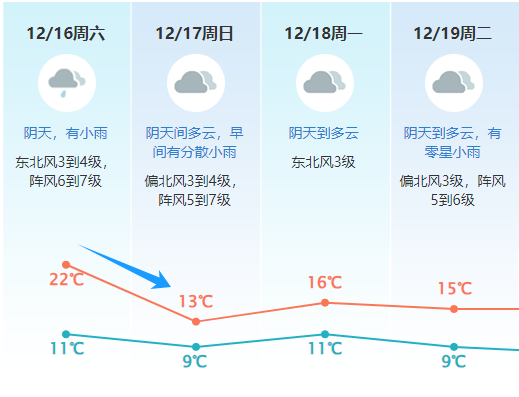 气温急降,伴有小雨