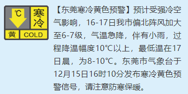 东莞发布寒冷黄色预警!“蹦极式”降温要来了…