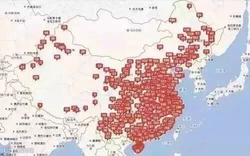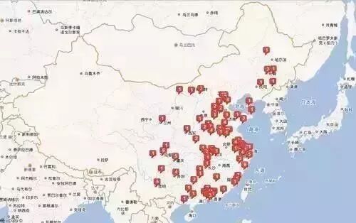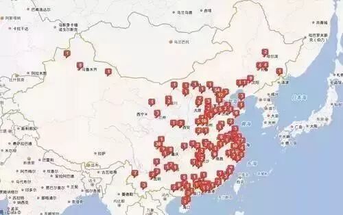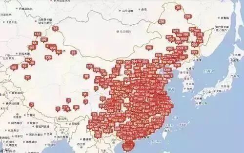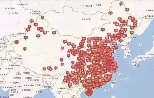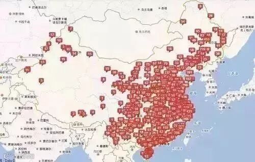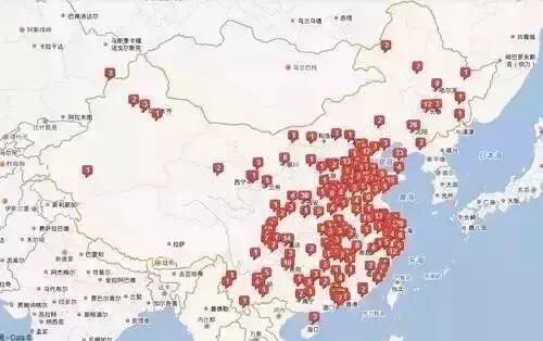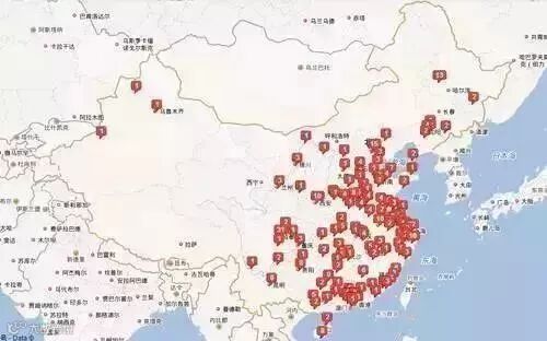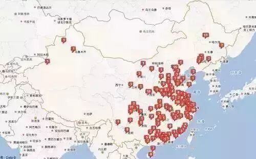 下图中的小红点点,代表的多是中国资本浓度最高的地理坐标。