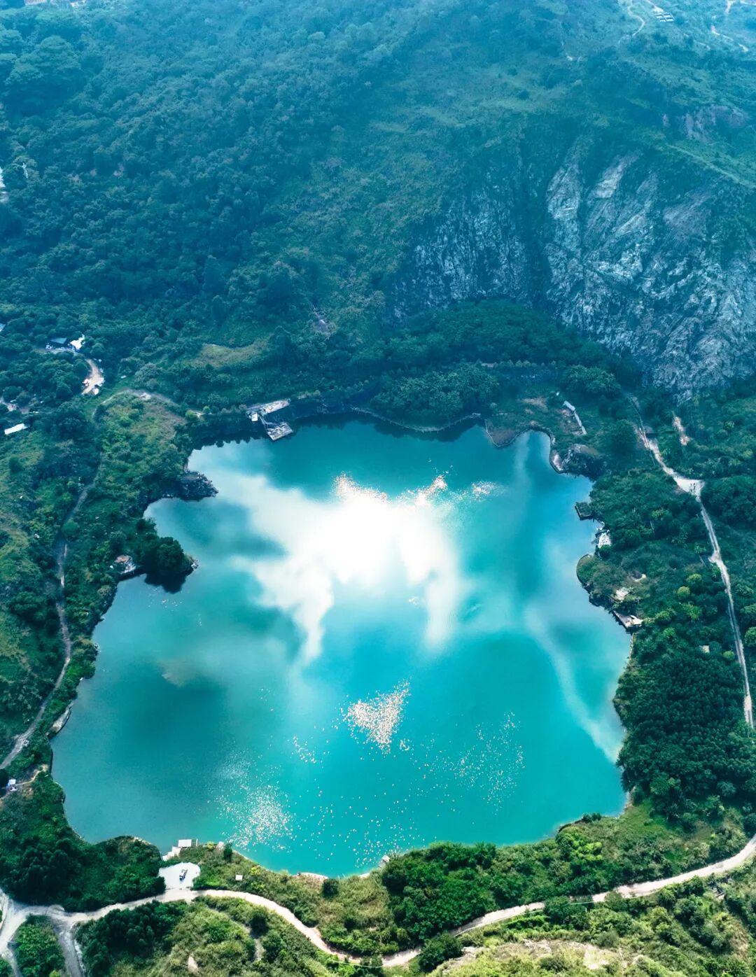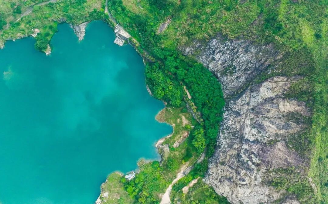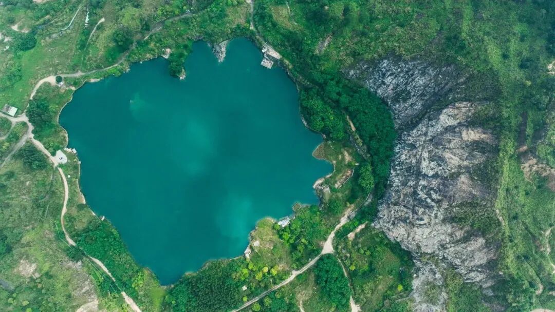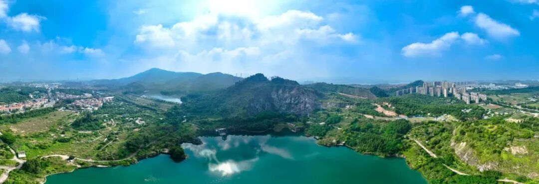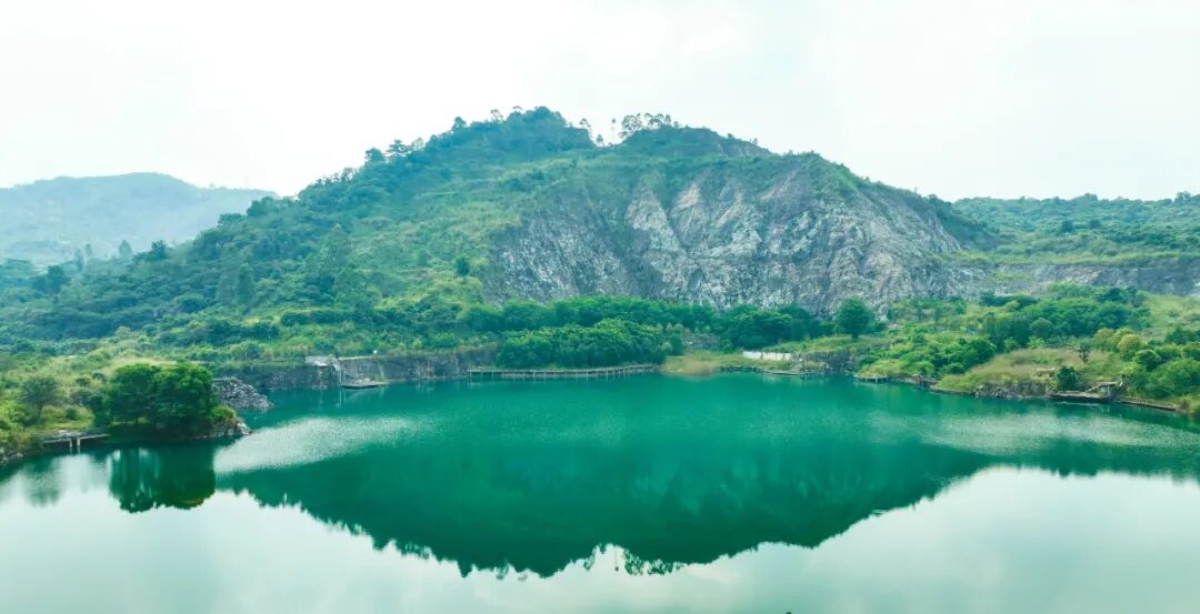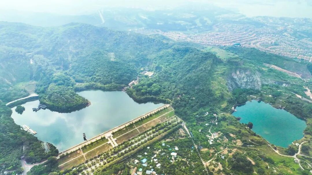 ▲水濂山湖和矿坑湖(右)