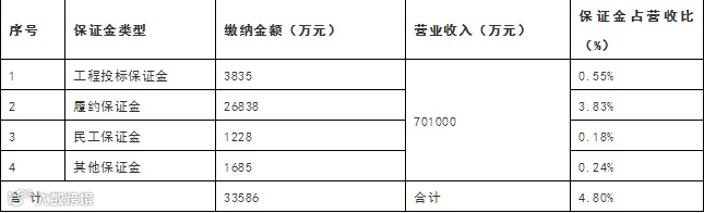 某施工企业在市场经营过程中,缴纳各类保证金情况如下表: