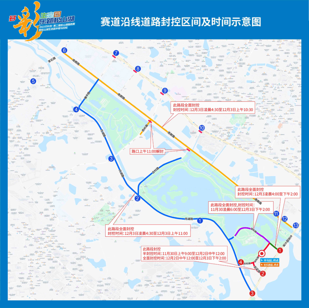 2023松山湖生态园马拉松将于12月3日举行,为保障比赛顺利进行,确保赛事道路交通安全畅通,赛事期间部分道路将采取临时交通管控措施,并开放供参赛选手使用的临时停车区。