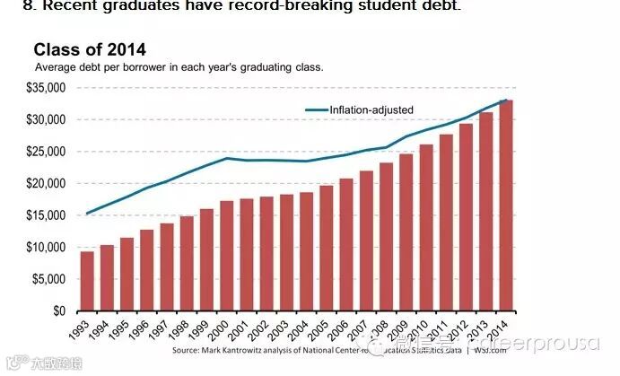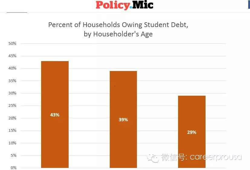 7、除了低收入和高租金,大约43%年轻人面临读大学债务。