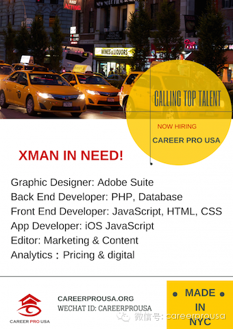 快快点击鼠标,发简历和作品集到info@careerprousa.org吧!