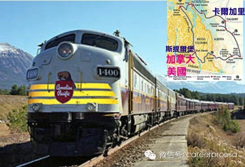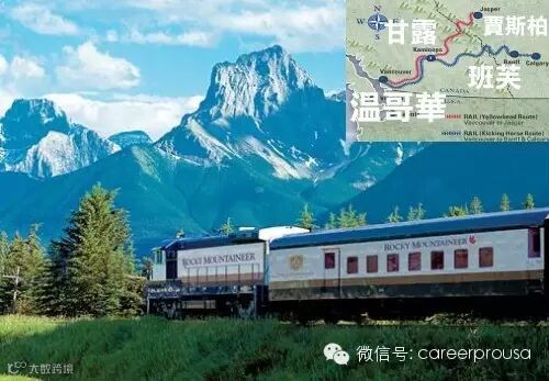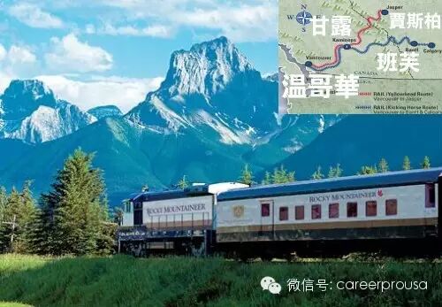 这家公司最先开辟了白天穿越加拿大洛矶山脉的行驶路线。两天的旅程中,乘客从温哥华(Vancouver)到班芙(Banff)或贾斯柏(Jasper)。这条路线运营得非常成功,使得现有的两列火车,每一列都有多达500名乘客。开行时间在四月中旬到十月中旬,或者是12月的雪季。列车会在矿业镇甘露(Kamloops)停靠,乘客们在此共进晚餐,并在宾馆里过夜。次日早上,列车的一部分会开往班 芙,另一部份会开往贾斯珀。无论你把温哥华作为起点还是终点,你一定要花上几天时间游览一下这里的国家公园。