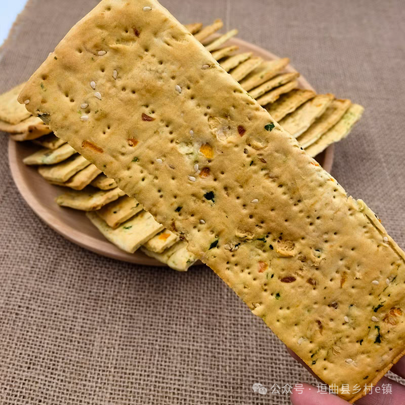 垣曲干馍片是垣曲地区的一种传统小吃,它是由小麦面粉、鸡蛋、油、盐、葱和椒叶等食材制成的薄片状食品,口感酥脆,味道香浓。