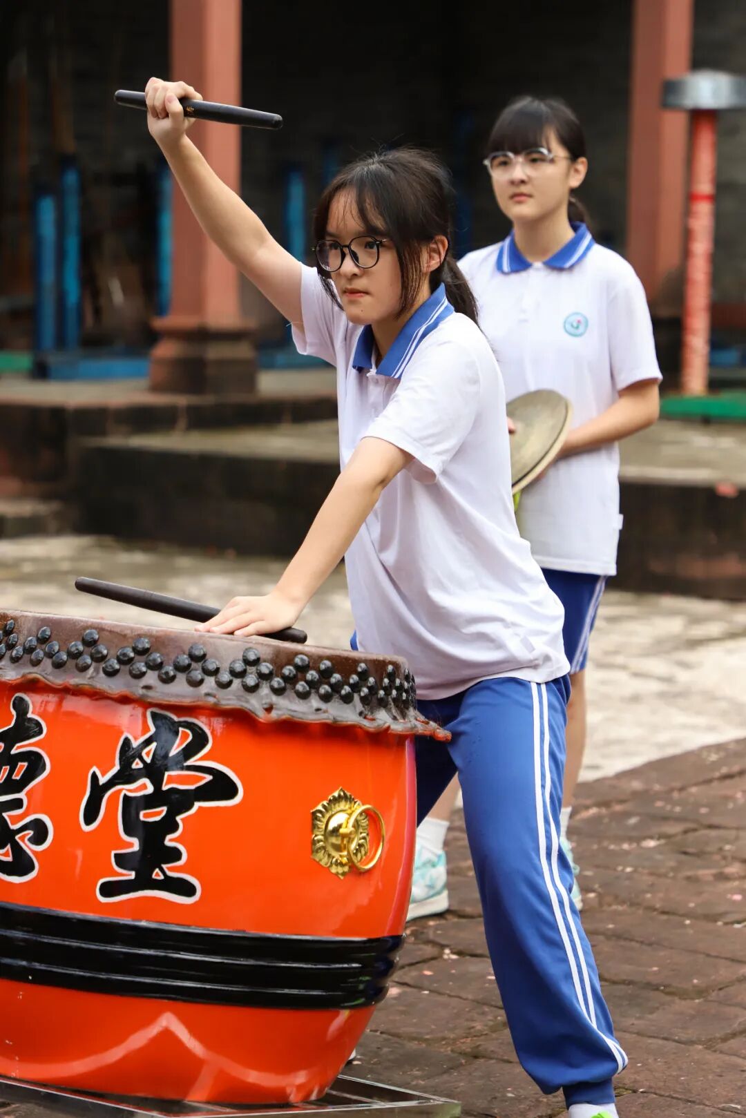 她们当中有些还是从小学到初中的校友。“小学时跟她们不太熟,一起加入乐队后,就熟络了。”来自中坑村的锣手嘉馨说。
