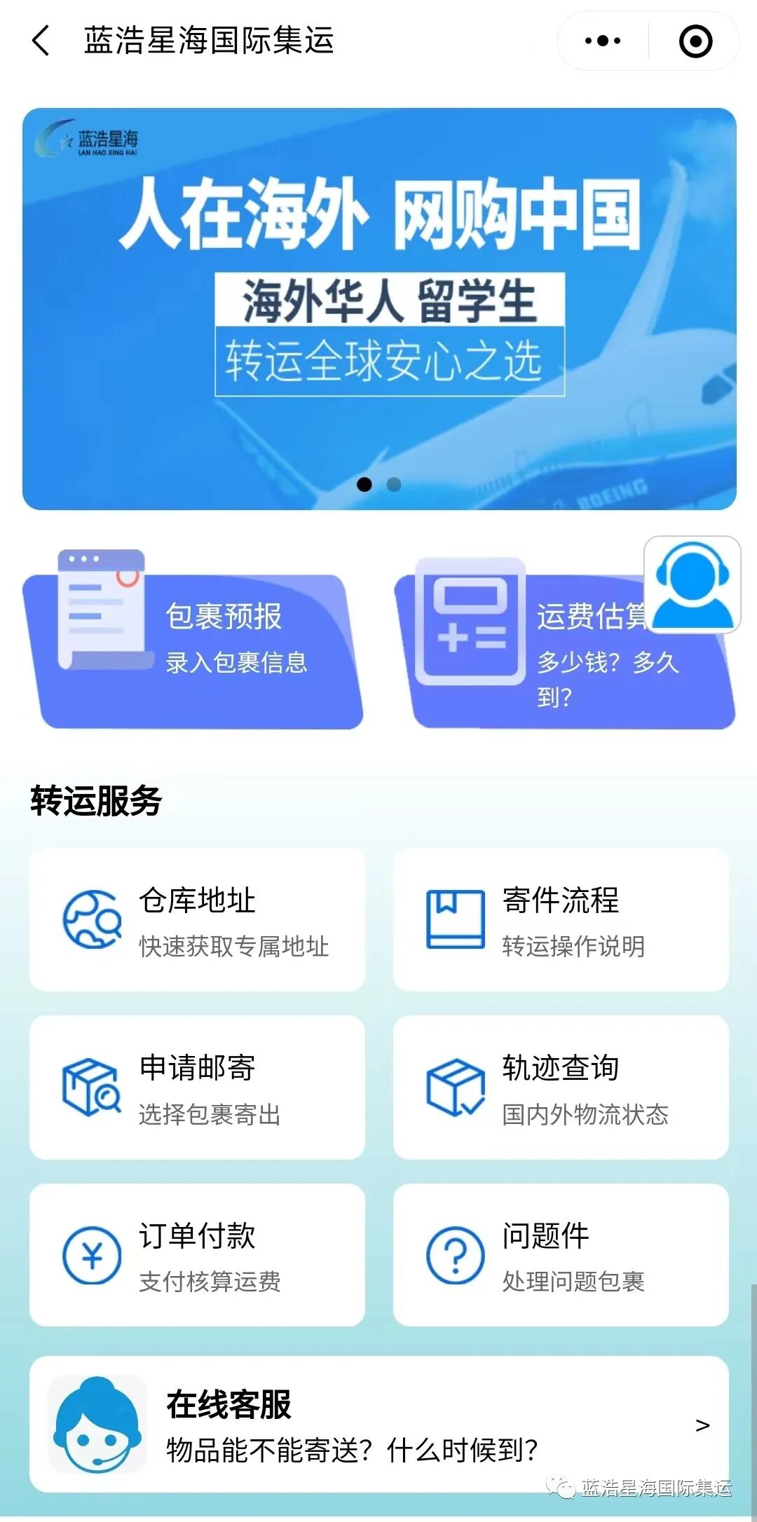 在微信公众号👉蓝浩星海国际集运填写寄件信息,我们客服会第一时间与您联系,一对一服务。可寄普货、食品、药品、化妆品、强磁弱磁产品、强电弱电产品等,欢迎咨询我们客服,真诚期待为你服务!