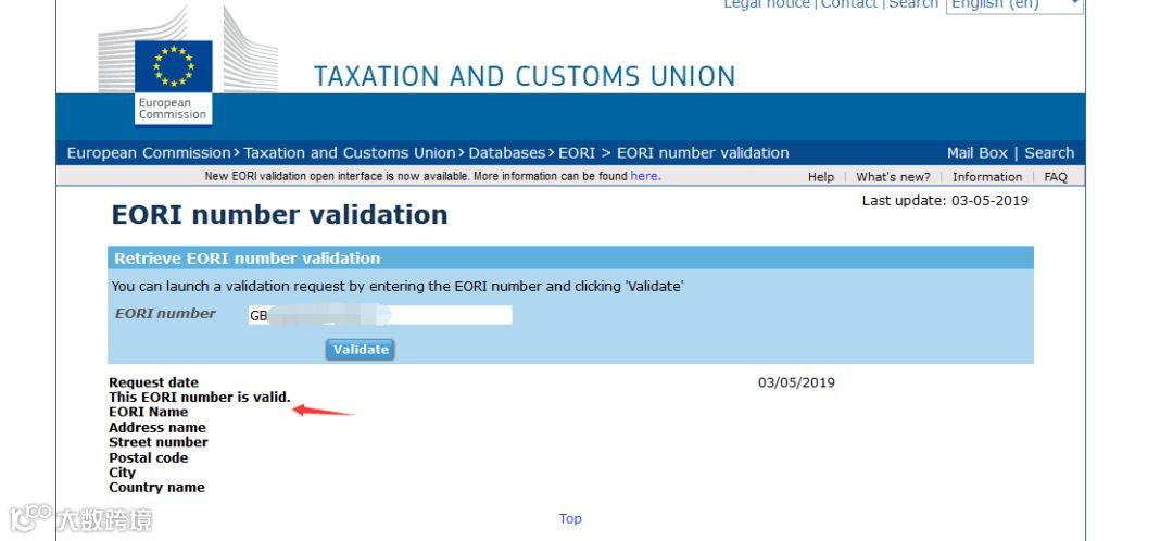 查询结果Valid 就说明,EORI号码已经成功激活啦~