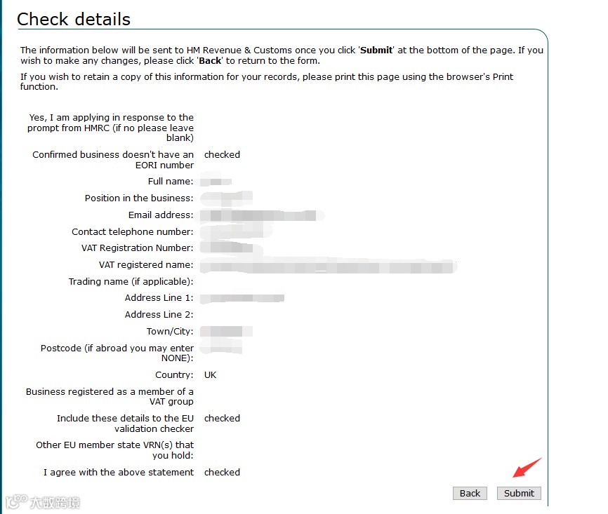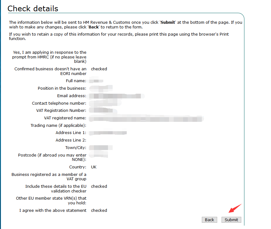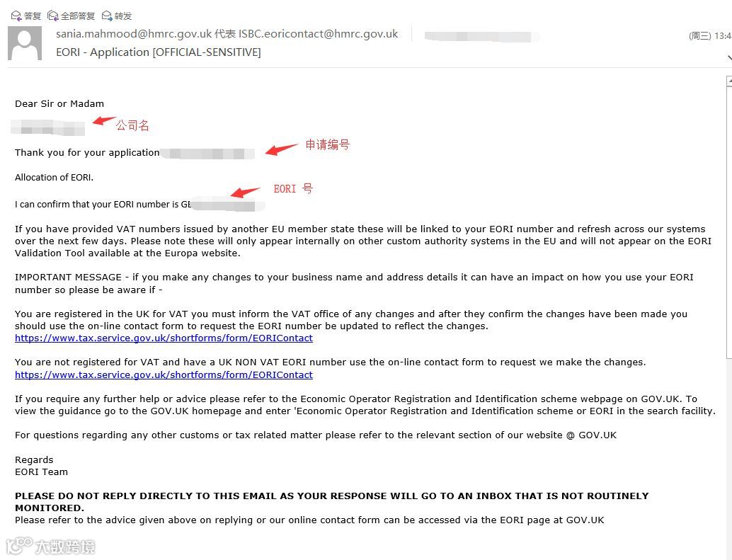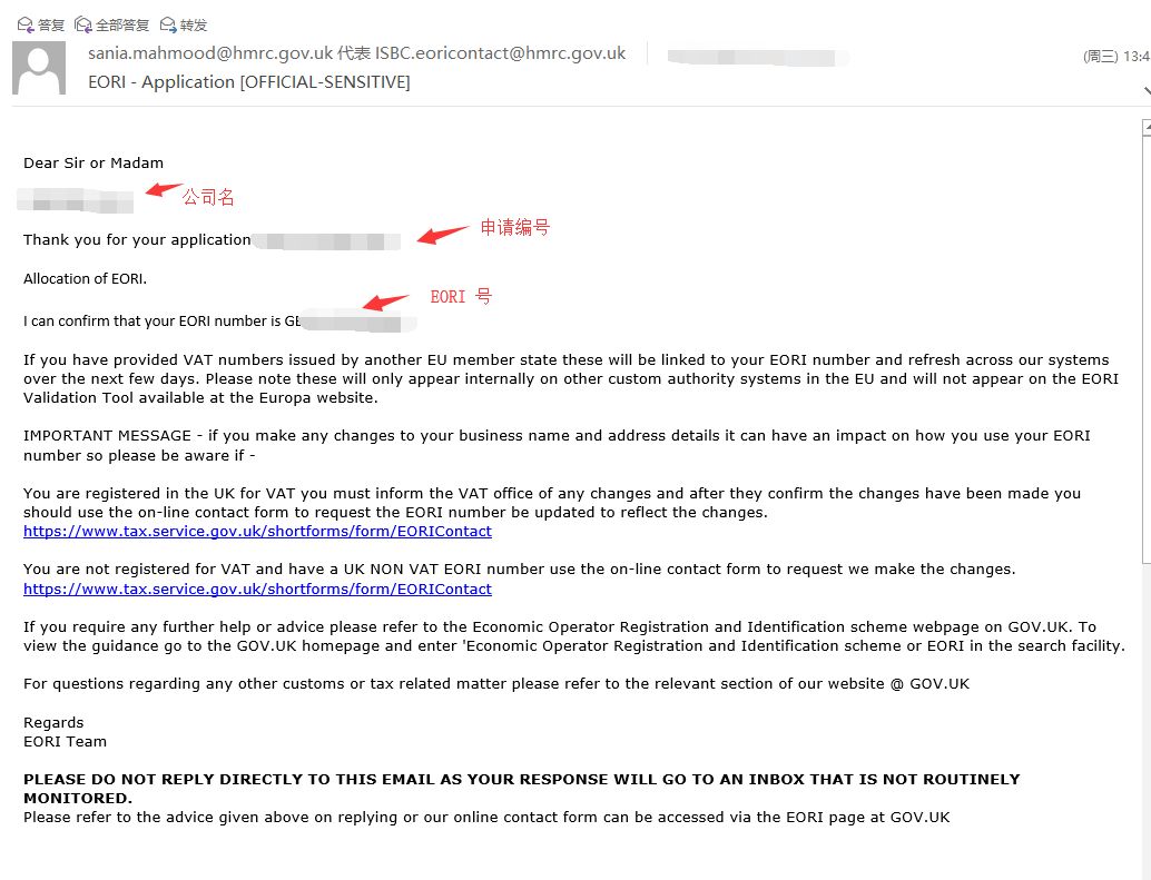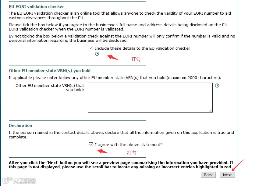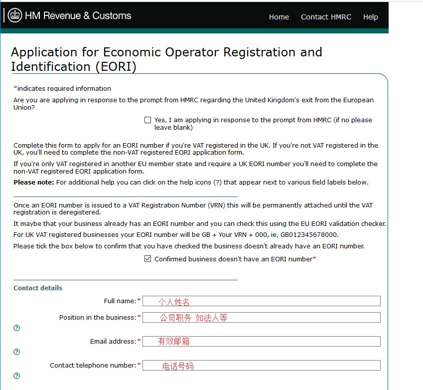 输入自己的EORI号码,格式为GB+VAT税号+000