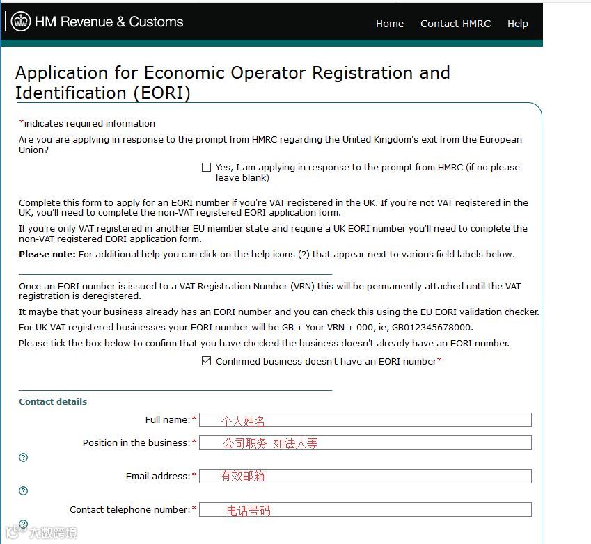 输入https://www.tax.service.gov.uk/shortforms/form/EORIVAT?dept-name=&sub-dept-name=&location=43&origin=http://www.hmrc.