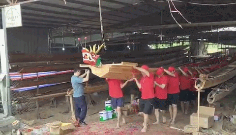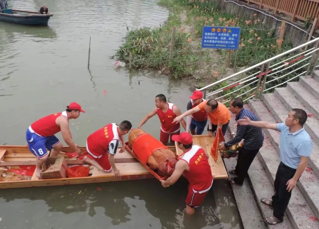 造好了新龙舟,还需举行新龙舟下水仪式,祈求新龙舟平平安安,祝愿接下来的日子风调雨顺、顺风顺水、国泰民安,也祝福龙舟队今年能扒出一个好成绩!