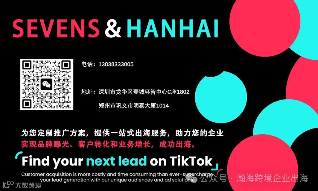 SEVENS&HANHAI专注于帮助国内企业寻找海外精准客户资源,提升品牌曝光。并提供从账号运营,视频剪辑,广告制作精准投放到客户数据反馈的一站式服务。无论您是想提高品牌曝光,还是获取海外精准客户资源,SEVENS&HANHAI都能为您定制个性化方案,助力您的企业成功出海!