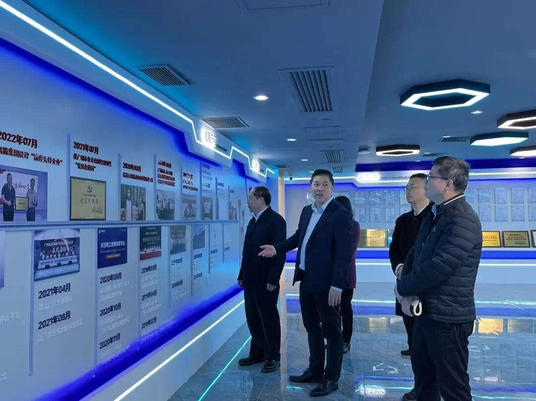(党支部书记、董事长吴烁带领众人参观展厅)
