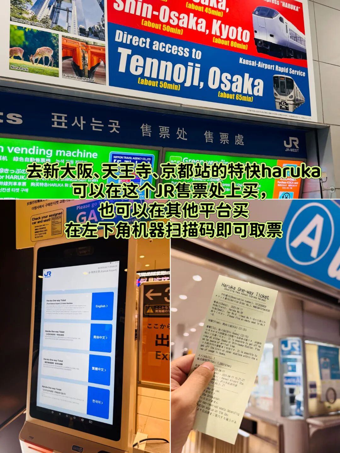 ❷如果你乘坐haruka特快的话,可以在各大平台提前购买(更便宜),凭借QRCode在机器上取票即可