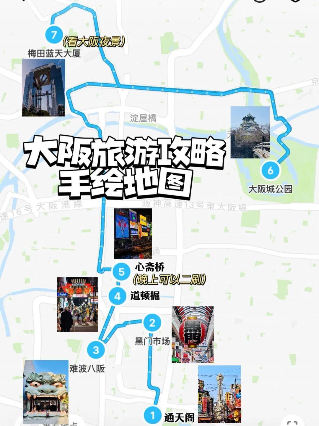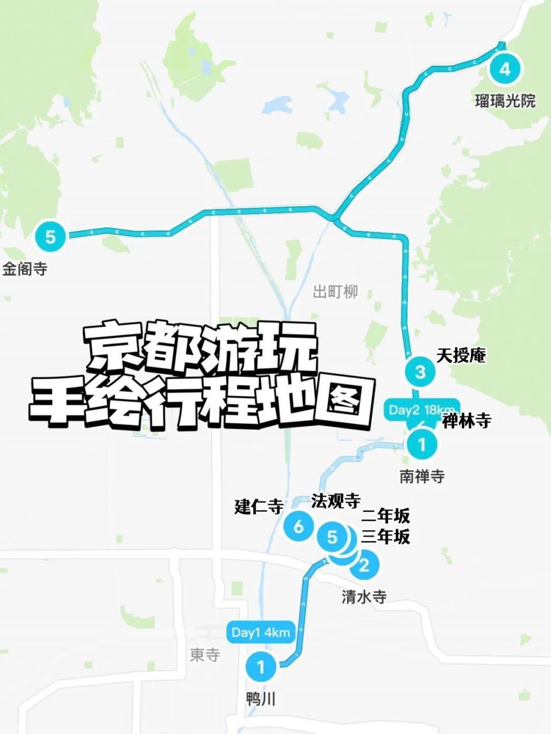 最后附上京都、奈良、大阪手绘行程地图,跟着走不迷路!