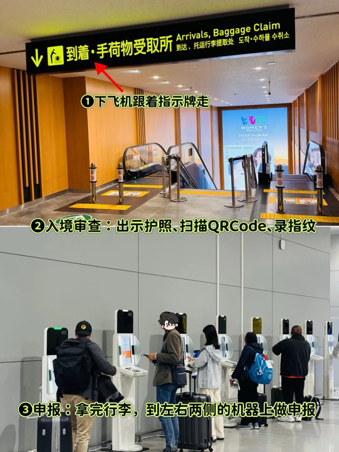 ❸入境审查🛃出示护照、扫描QRCode、录指纹