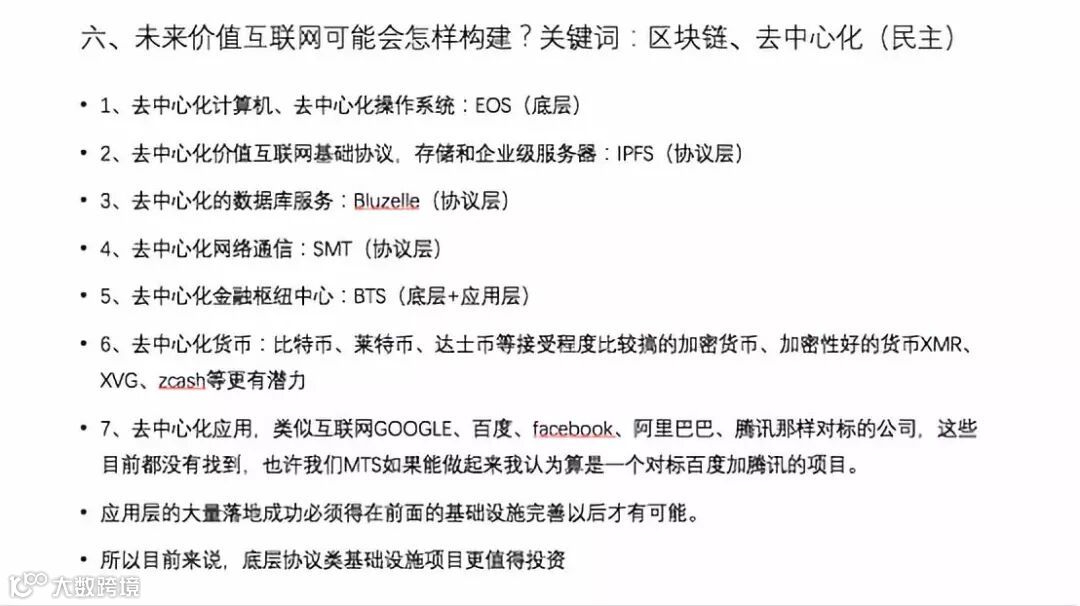 波波老师提出了未来价值互联网的构建,重要关键词是区块链和去中心化(民主)。