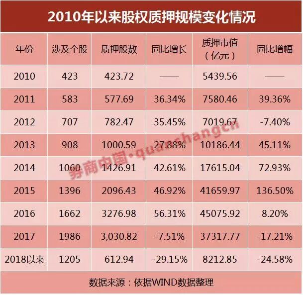 股权质押业务涉及市值首次突破万亿元级别,当年质押市值同比增长45%;