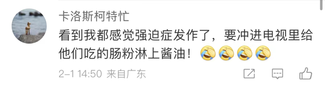 徐纪周:这一点我真的要解释一下,其实买来的肠粉都配了酱油,但我们在剧组真的基本上都是干吃(肠粉)。然后拍的时候演员也不太加蘸料,因为蘸料容易沾在脸上,妆容易脏。一旦脏了,就得补妆后重新再拍一遍,而且有时候不接戏。好几次拍吃肠粉的戏,他们都有意地不加酱油。拍吃饺子的戏时也是一样的,大家吃饺子也没蘸醋,都是一样的原因,不想掉妆。