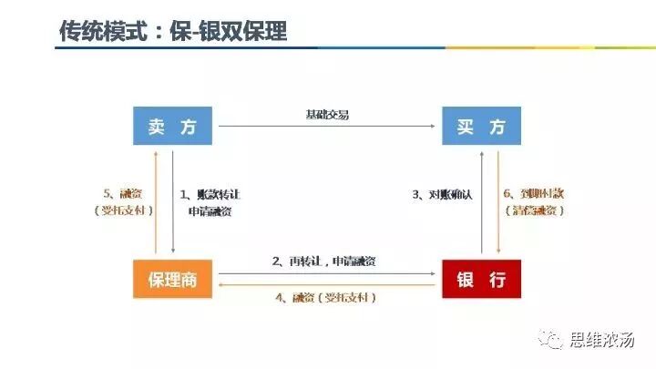 但此时,银行会面临一个操作问题:若买方是核心企业,卖方分散在全国各地,怎么解决卖方的授信问题?这个问题并不难解决,尤其是事业部制的银行,只要调整一下总部和分支机构的责任和流程就可以了。(之前某些银行总行事业部与分支机构的定位没有设定好,形成很大的业务障碍,甚至内部竞争,严重阻碍了业务拓展。)