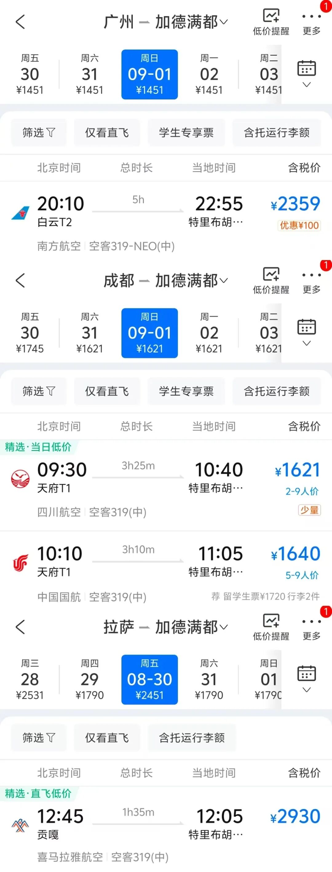 目前,广州、成都、拉萨等地都开通了直飞加德满都的航班。