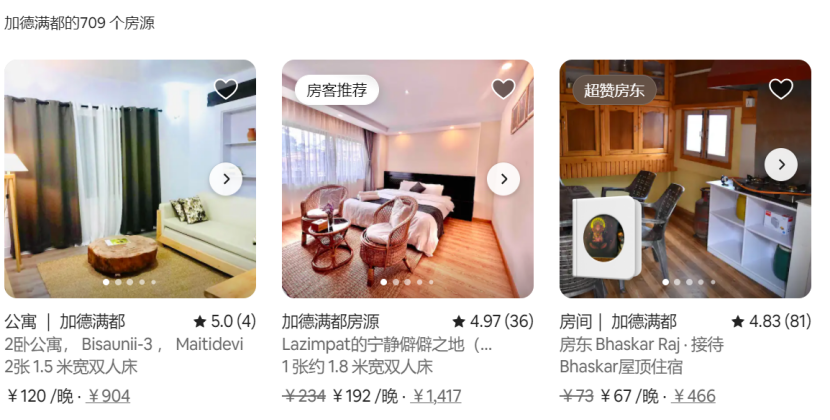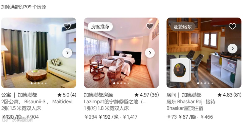 (“爱彼迎”官网上加德满都的房源定价在合理范围内)