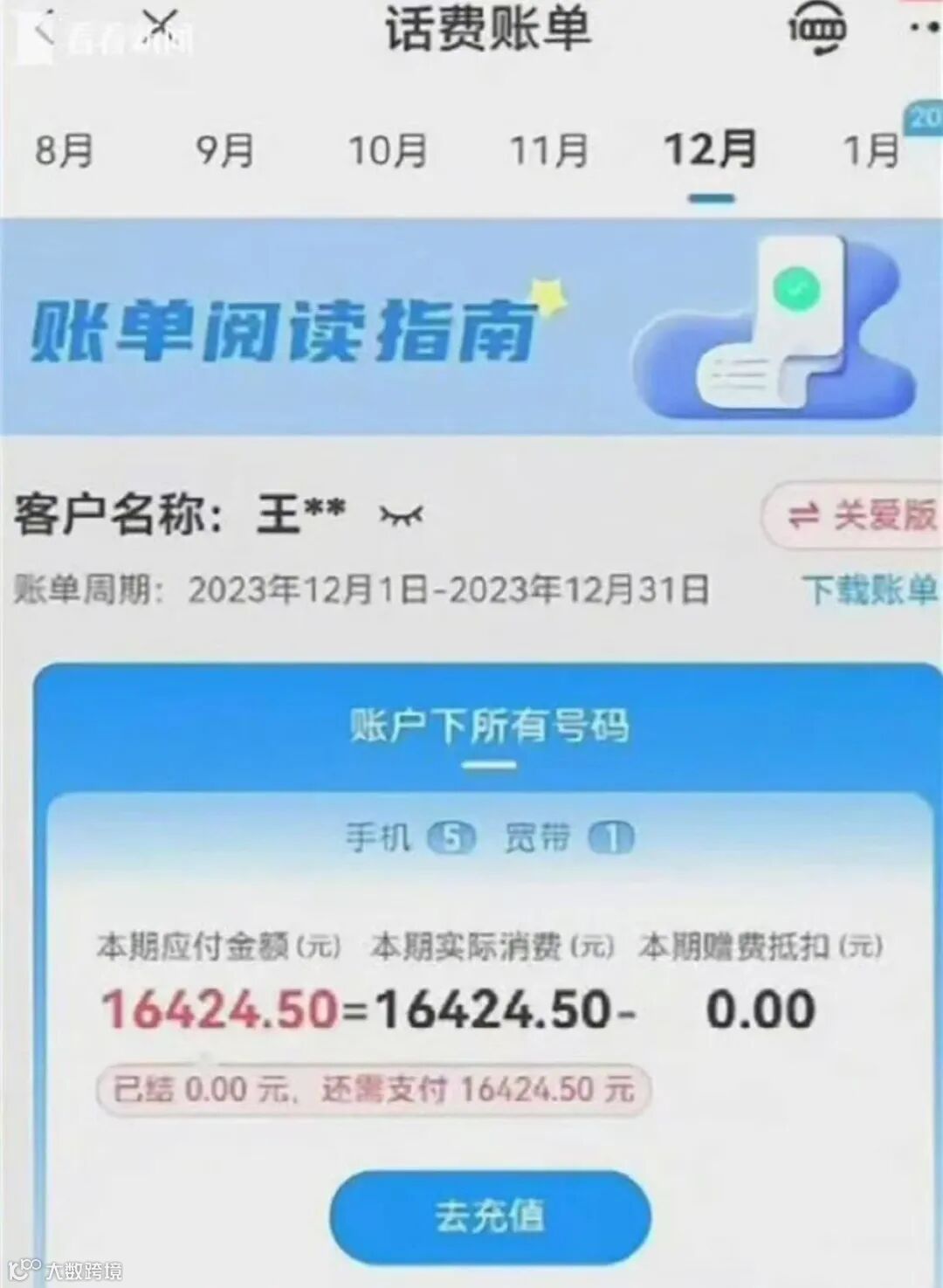 落地尼泊尔后,老父亲在行程开始前发了条朋友圈,就收到了运营商发来的短信,提示话费已超500元。等回国发现,最终账单竟然高达1万6千元!