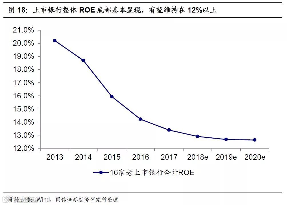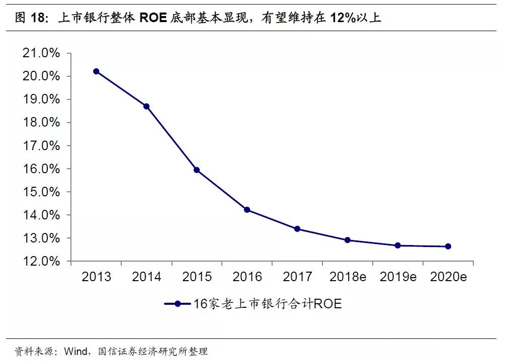 综合上述因素之后,我们预计上市银行整体净利润增速在2018年有望达到6.4%,行业整体ROE底部基本显现,有望维持在12%以上。