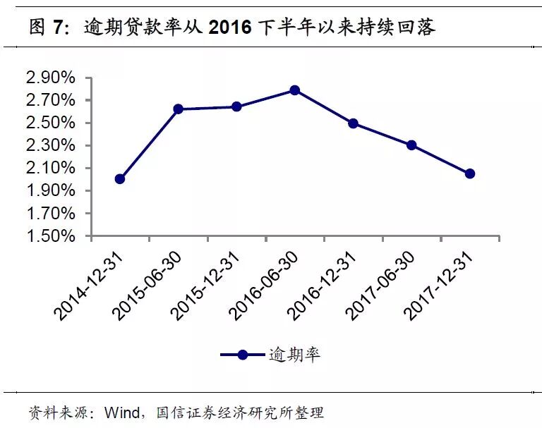 (2)前瞻性指标上,关注贷款率和逾期贷款率从2016下半年以来均持续回落;