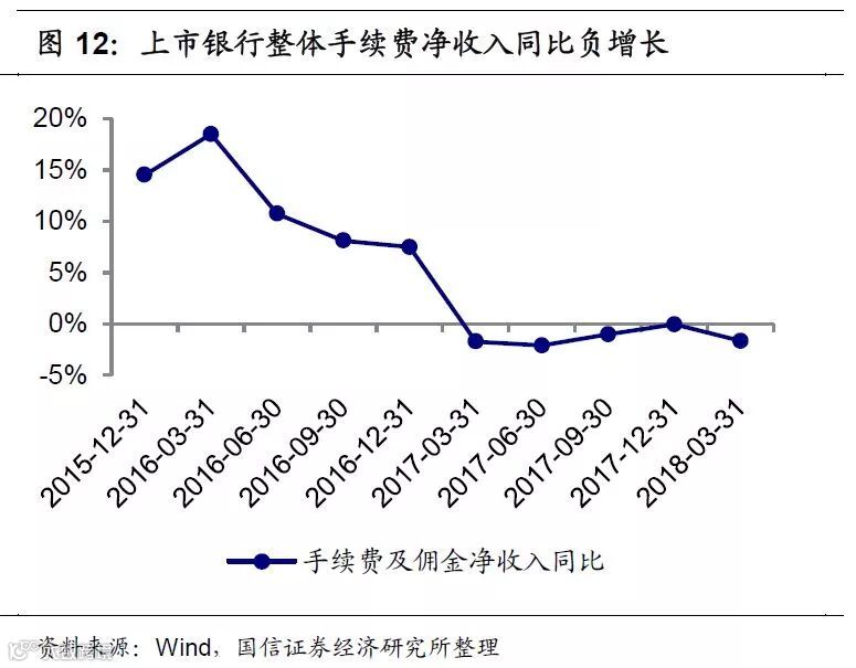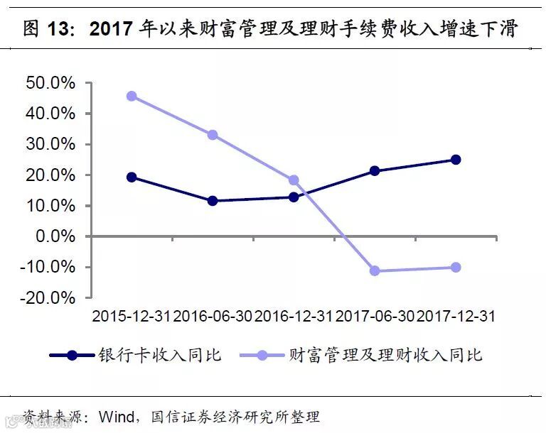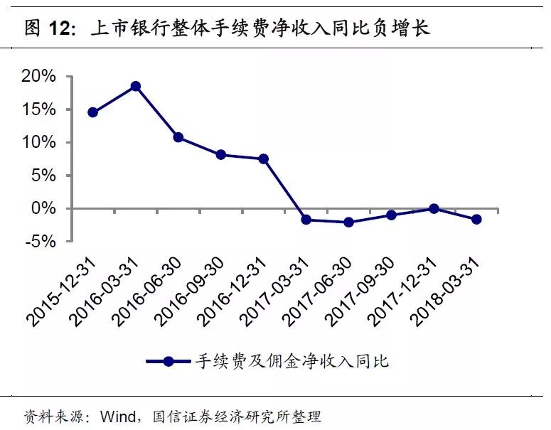 (4)中间业务收入可能继续小幅拖累盈利,但幅度有望减缓。上市银行整体表外理财余额在2017年上半年显著下降,下半年略有增长。虽然我们预计2018年理财业务仍存在较大的调整压力,但由于基数已经较低,其对净利润增长的负面影响难以超越2017年。同时,其他中间业务收入项目进一步下滑的空间已不大,“减费让利”余地变小,而信用卡业务仍在高速增长。因此,我们预计中间业务收入下滑对盈利的负面影响将缓和。