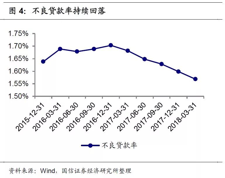 2017年和2018年一季度上市银行整体资产质量持续改善,主要观察指标均企稳好转: