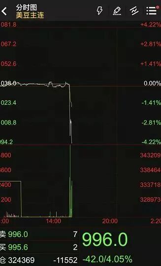 美国期货市场瞬间做出反应:CBOT大豆期货急跌4%,最低回到1000美分以下报994.2。其他农产品亦全线大跌:美豆、玉米主力合约跌逾3%,美豆粕主力合约跌2.88%,美豆油、小麦跌近2%。活牛跌1.2%、瘦肉猪跌5%。美豆期货跌幅随后扩大至5%。ICE棉花期货跌3%左右,现跌3.66%至79.02美分/磅。