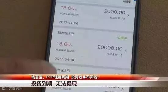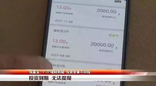 最近,有一些投资者向我们栏目反映,说他们投资了深圳的钱富宝P2P理财产品,但却遇到了一个闹心的问题,投进去的钱到期了,却不能马上拿回来。