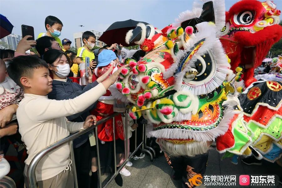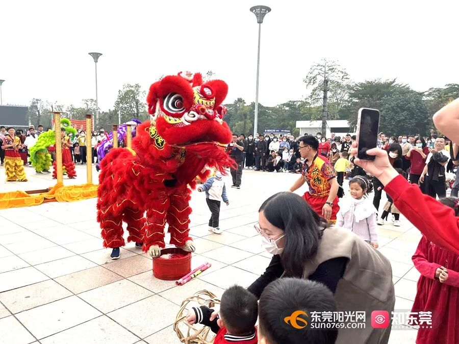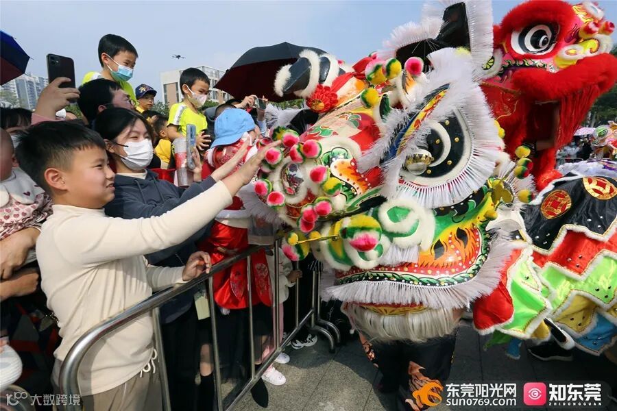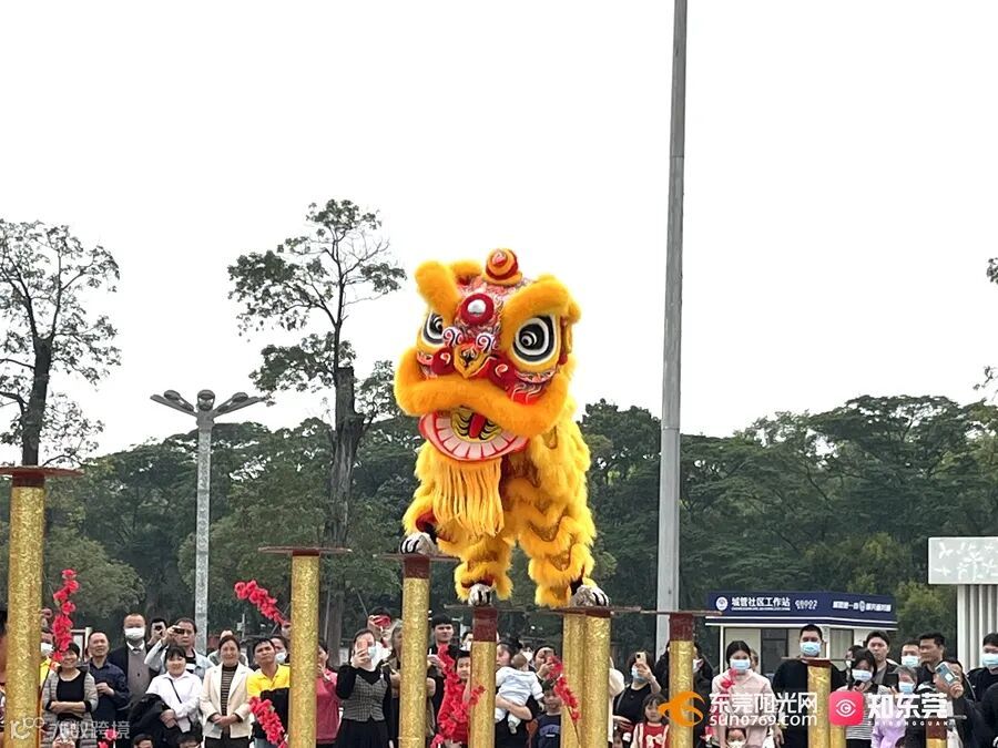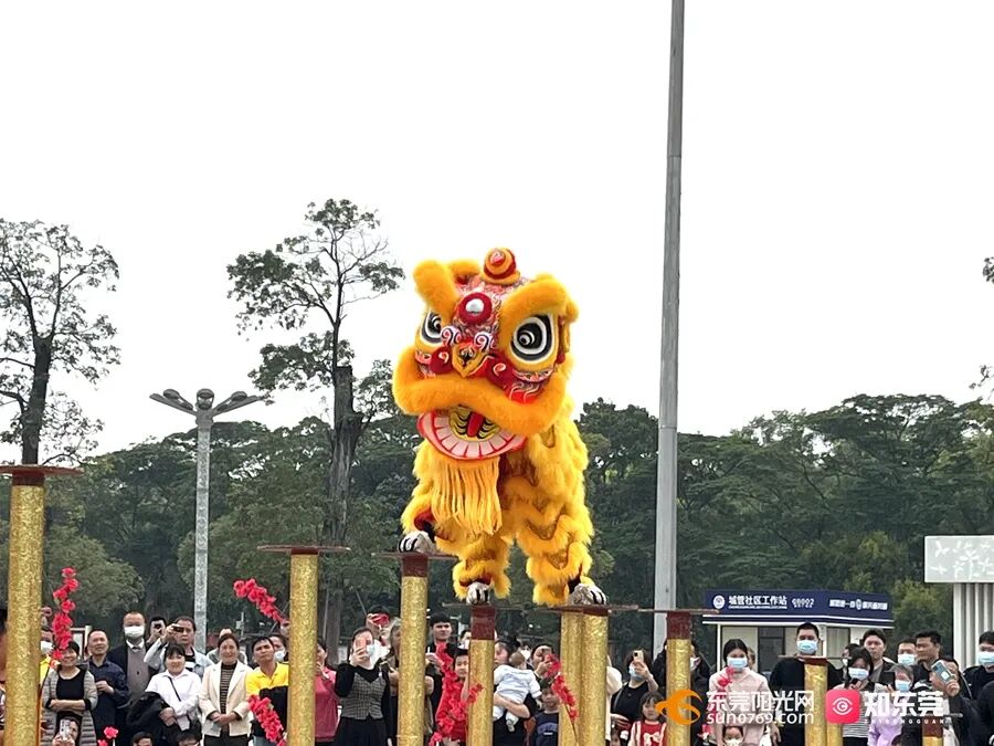 在虎门太平广场举行,随着锣鼓镲等打击乐器声响起,欢快灵动的狮头跟随节奏时而摇摆、时而跃起,表演惟妙惟肖,展现了狮子生机勃勃的精气神。