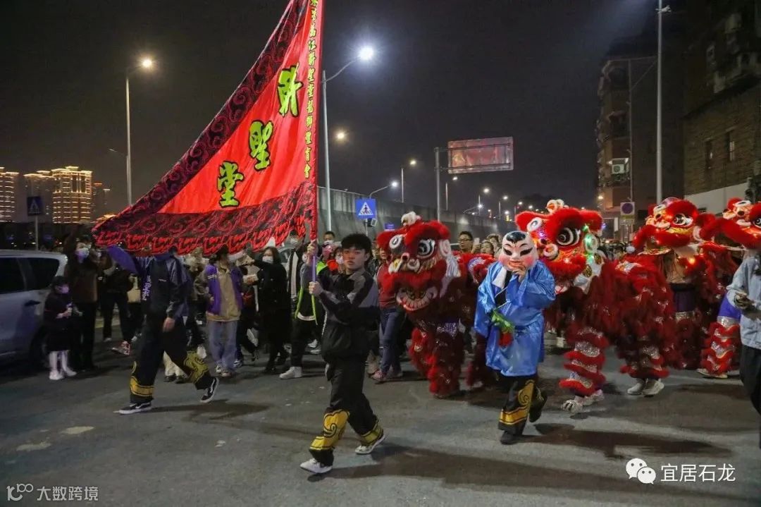 精彩的醒狮表演结束后,便是醒狮巡游。巡游队伍从济川广场出发,经过桥东大街、花园大街、振兴路、新兴北路、新兴南路、沿江中路后,再次回到济川广场。