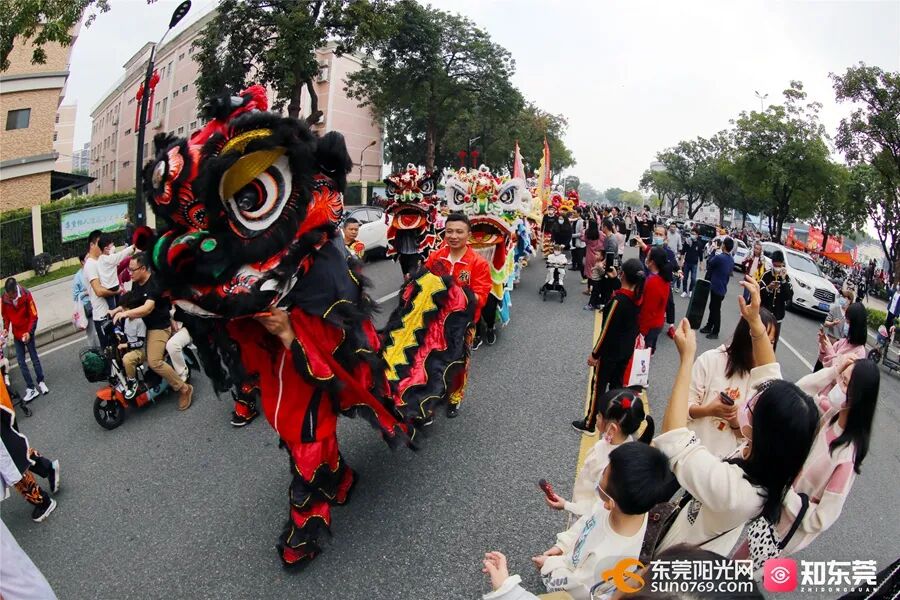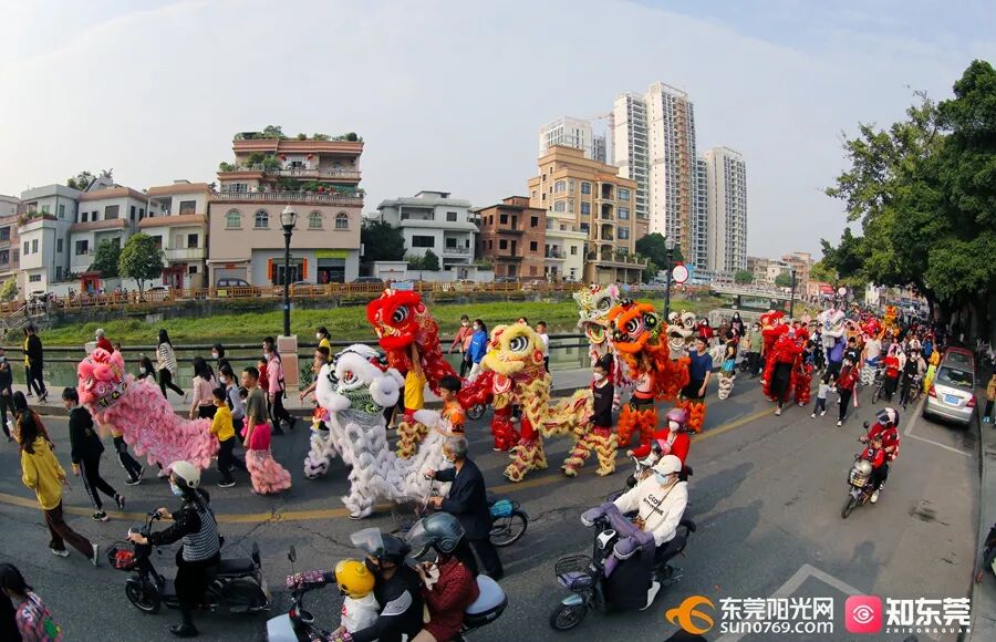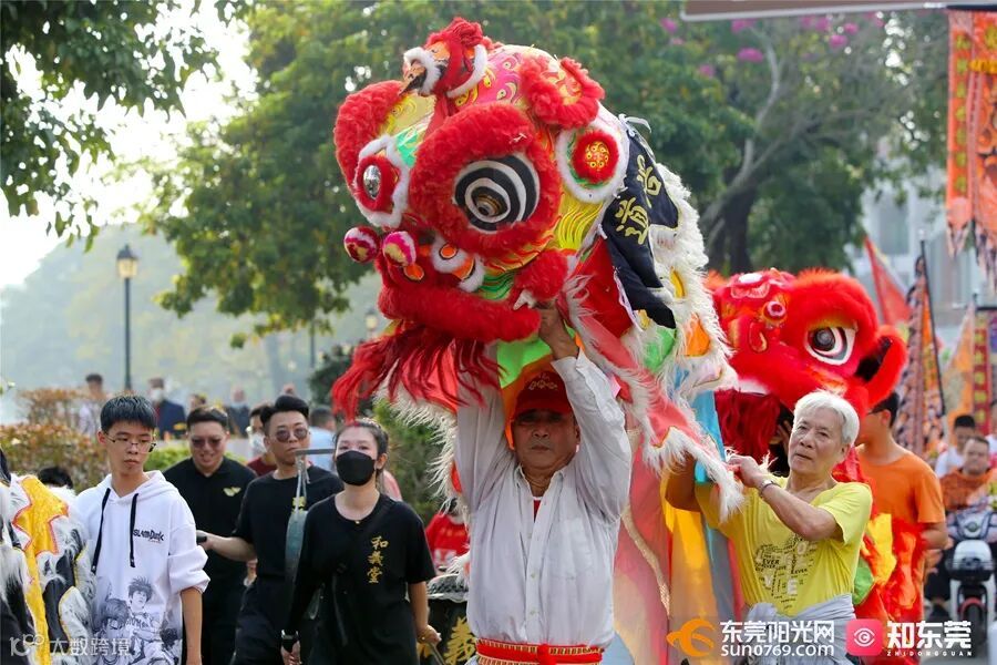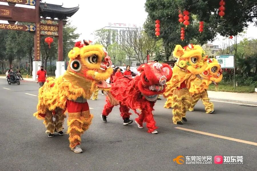 东莞不少镇街举办新春醒狮巡游活动
