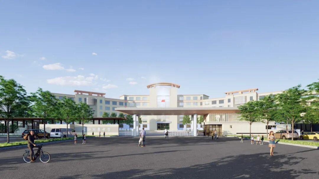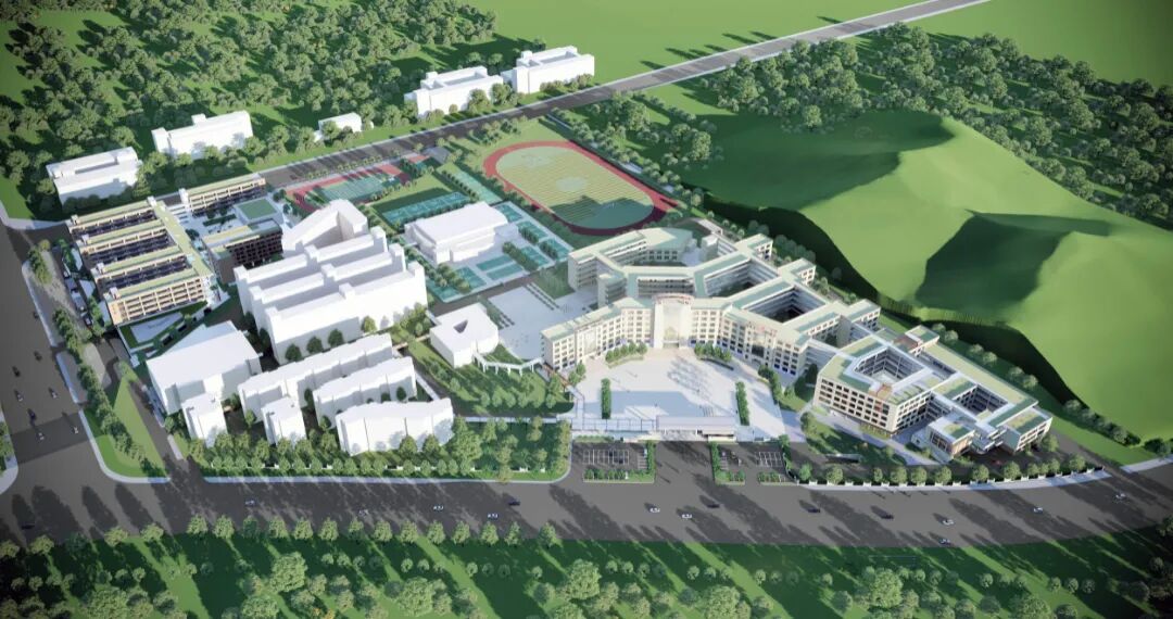 教学楼则在拆除原有旧艺术楼建筑及预留空地上进行改扩建,新建教学楼规模约30个班,并按省级标准配备90个班级的各功能教室,包括计算机教室、美术教室、理化生实验室、音乐教室等,以及阶梯教室、图书馆、地下停车场。