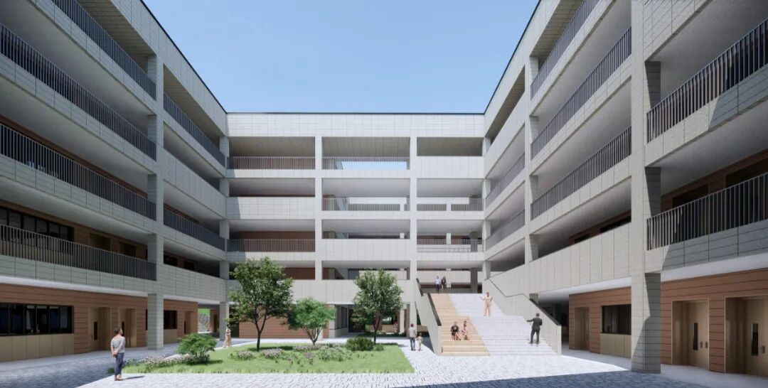 此外,新建教学区与原有校区之间将增加风雨连廊系统,满足使用需求,整体提升校园景观空间环境。