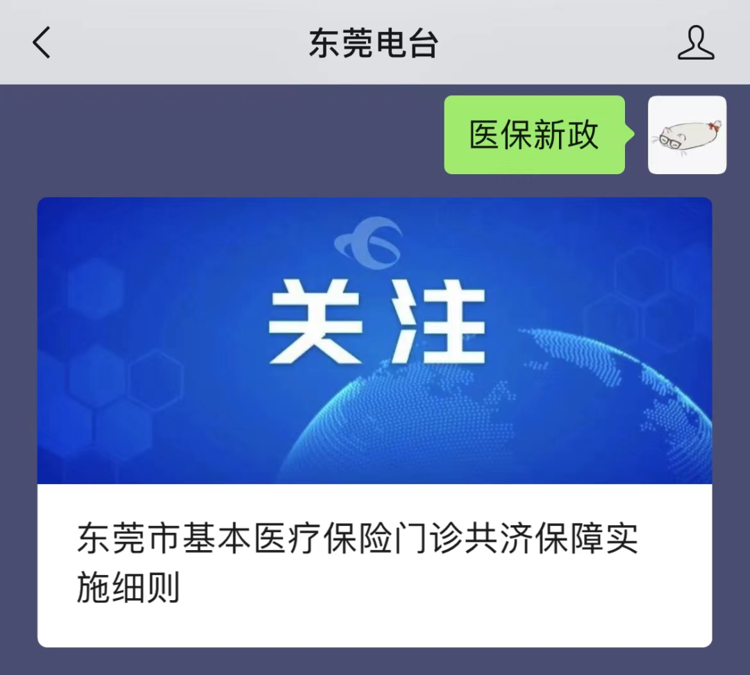 ②点击“发消息”进入聊天界面发送“医保新政”,即可快速获取。