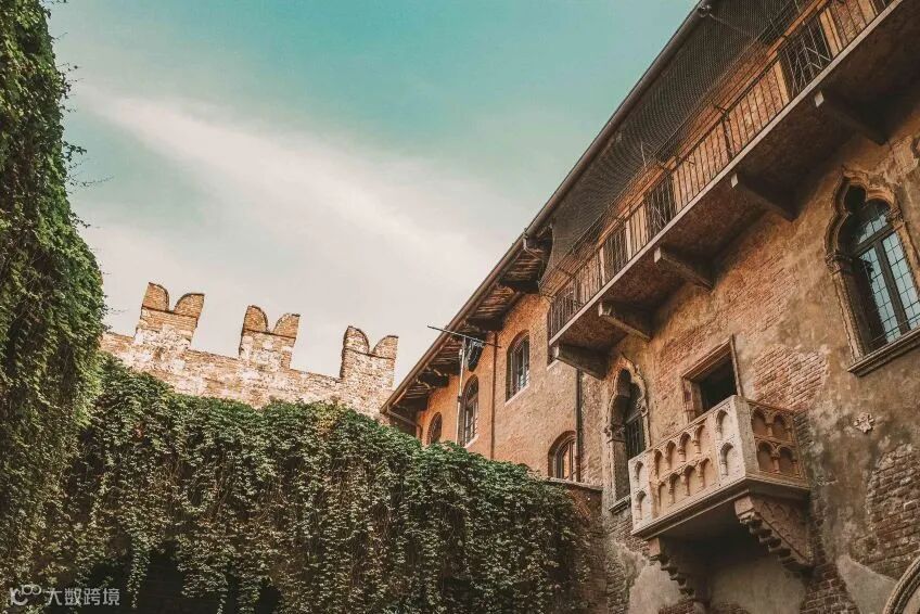 大门正面靠院墙是比朱丽叶的青铜塑像,据传,手摸朱丽叶的右乳许愿,便可得到她真诚的祝福,使有情人终成眷属。院子的右边,抬头便可看到举世闻名的“朱丽叶的阳台”。阳台不大,外面雕有简单的图案,两边可见两扇小窗。罗密欧就是在这个阳台下与朱丽叶密密幽会,互诉衷肠,并从这个阳台爬上去,与朱丽叶私定终身。有兴趣的话你可以另付费用进入阳台留影。
