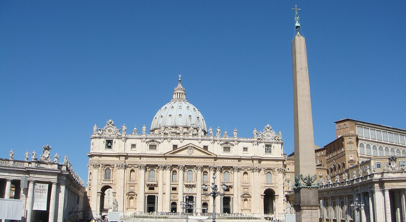 “梵蒂冈”一词来自拉丁语 Vaticinia,意为“占卜之地”[8]。早在公元4世纪,罗马皇帝君士坦丁就在罗马城西北角耶稣门徒圣伯多禄(圣彼得)殉难处建立了君士坦丁大教堂以示纪念;到了15至16世纪,君士坦丁大教堂被改建成如今的圣伯多禄大殿,成为天主教会举行重大仪式的场所;公元756年,法兰克王国国王丕平把罗马城及其周围区域送给教宗(教会史上称为“丕平献土”),后来就以此成立了政教合一的“教宗国”,范围广及意大利半岛中部的大部分地区。