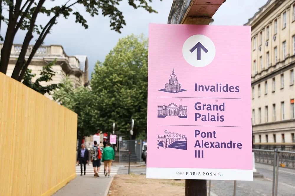 在主色调上,此次奥运大胆地选择了粉色、蓝色、紫色、白色、金色等作为主色调。设计灵感则源于巴黎的铺路石。